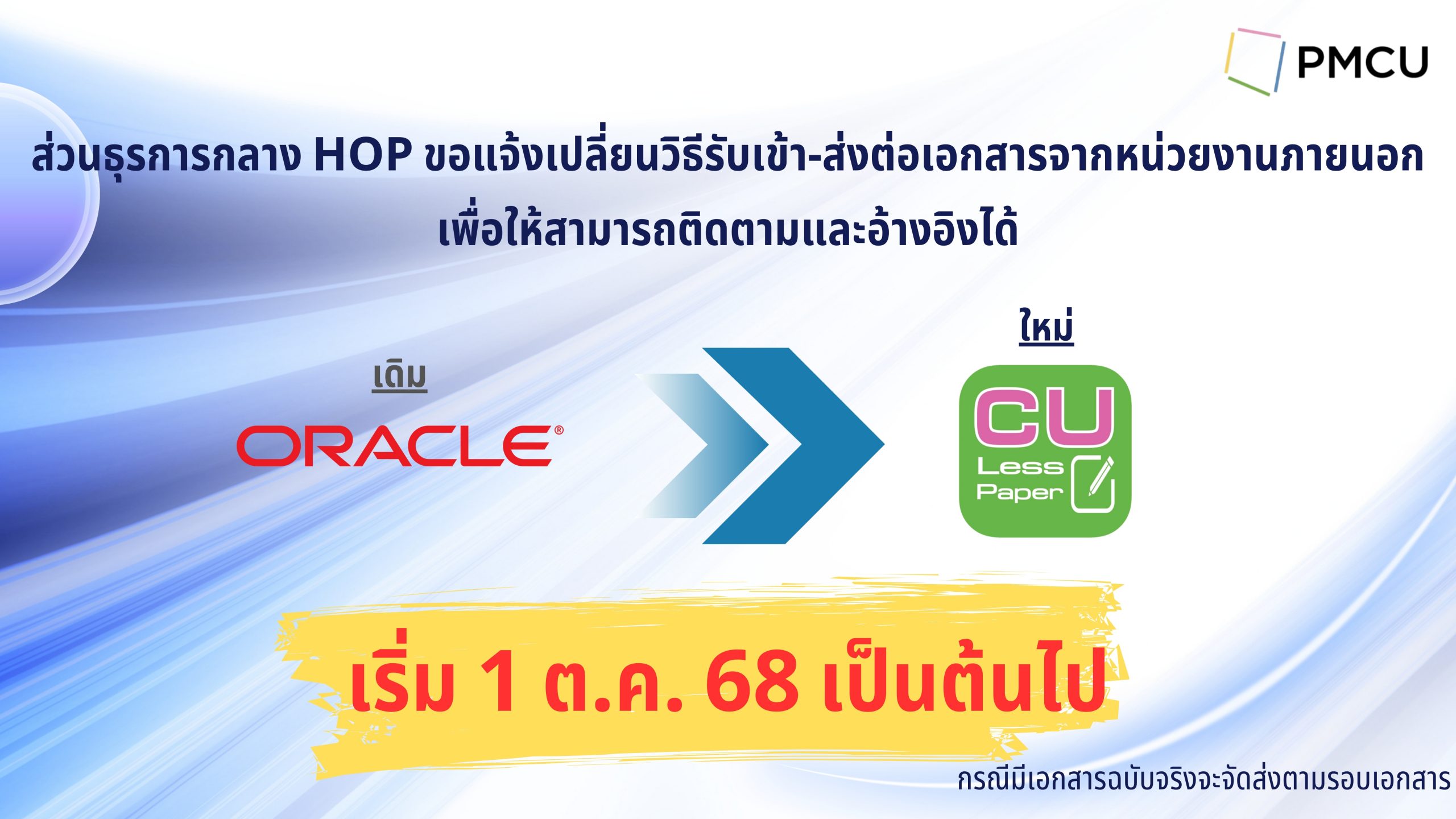 ส่วนธุรการกลาง HOP ขอแจ้งเปลี่ยนวิธีรับเข้า-ส่งต่อเอกสารจากหน่วยงานภายนอก เพื่อให้สามารถติดตามและอ้างอิงได้