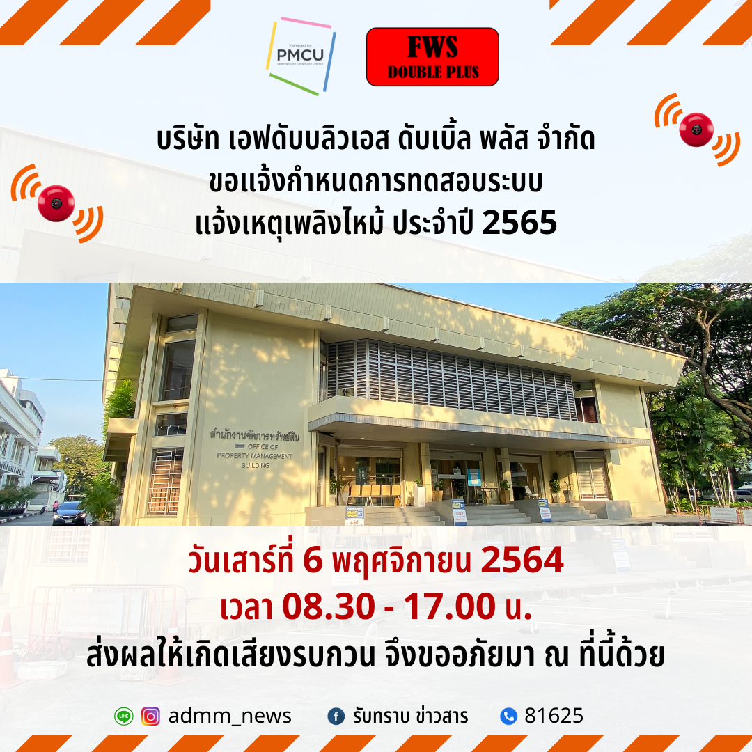 แจ้งกำหนดการทดสอบระบบแจ้งเหตุเพลิงไหม้ ประจำปี 2565