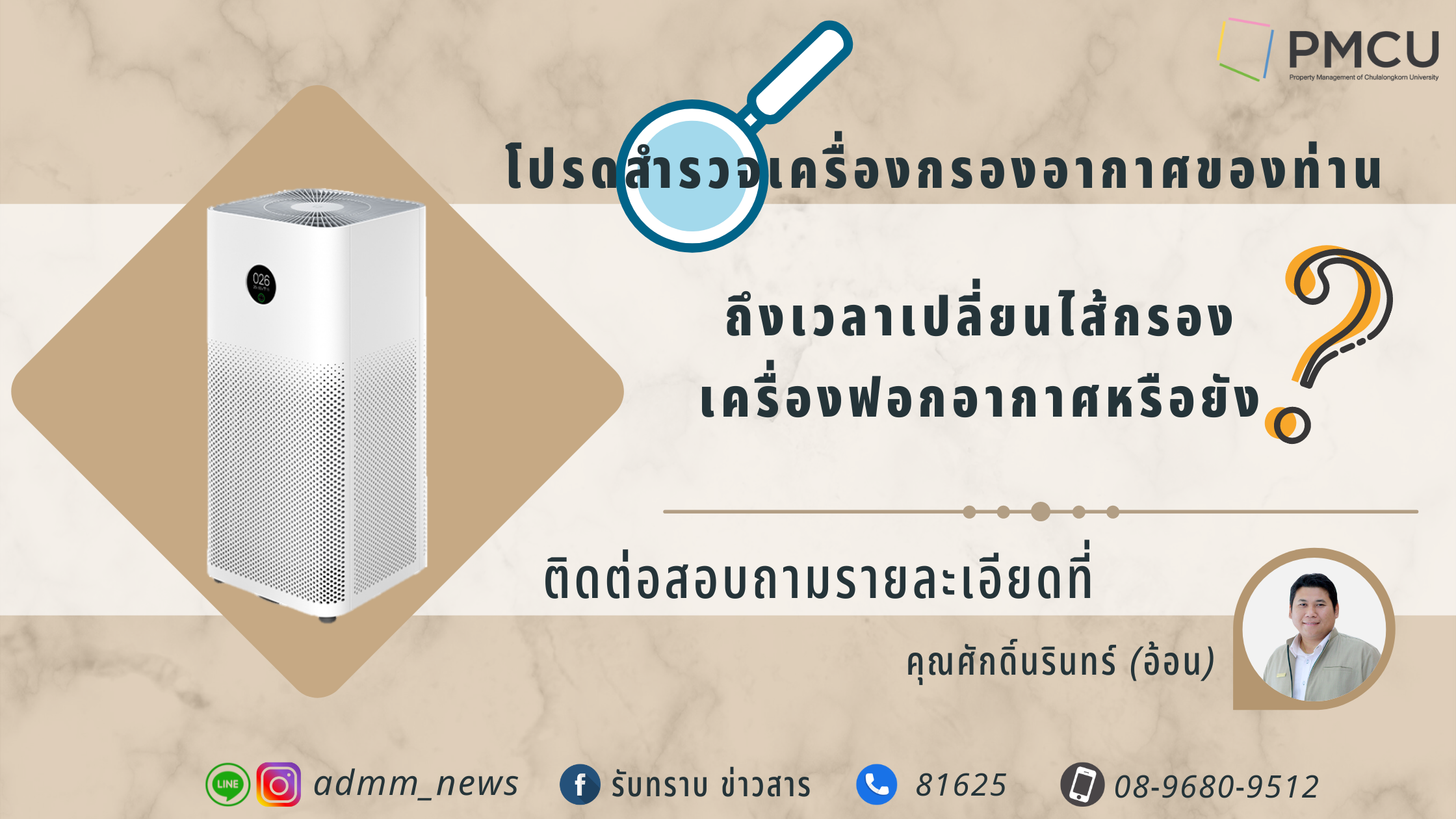 ติดต่อสอบถามรายละเอียดเพิ่มเติมได้ที่ : ส่วนธุรการกลาง คุณศักดิ์นรินทร์ (อ้อน) โทร. 81625 มือถือ 08-9680-9512