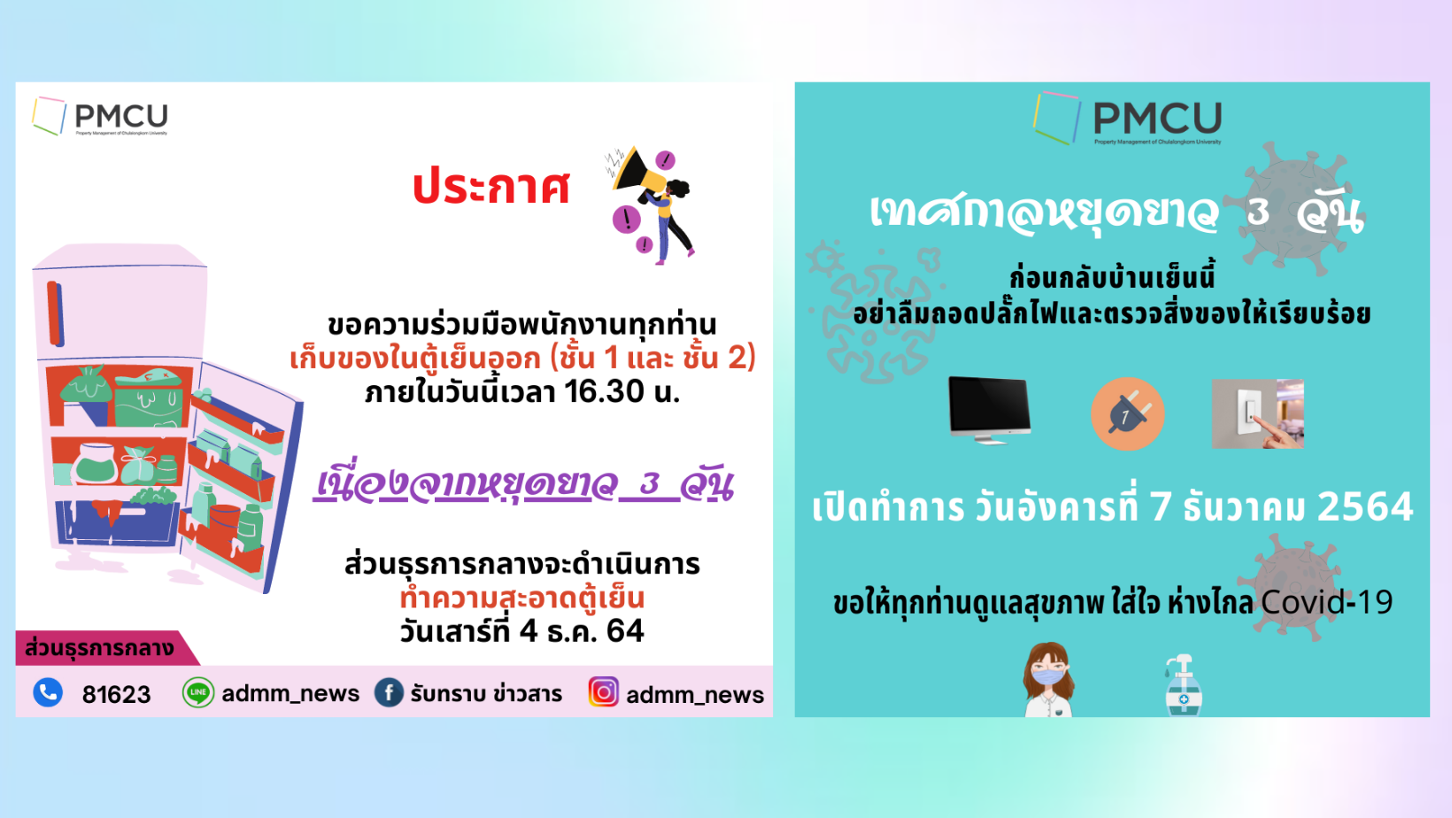 เปิดทำการ วันอังคารที่ 7 ธันวาคม 2564