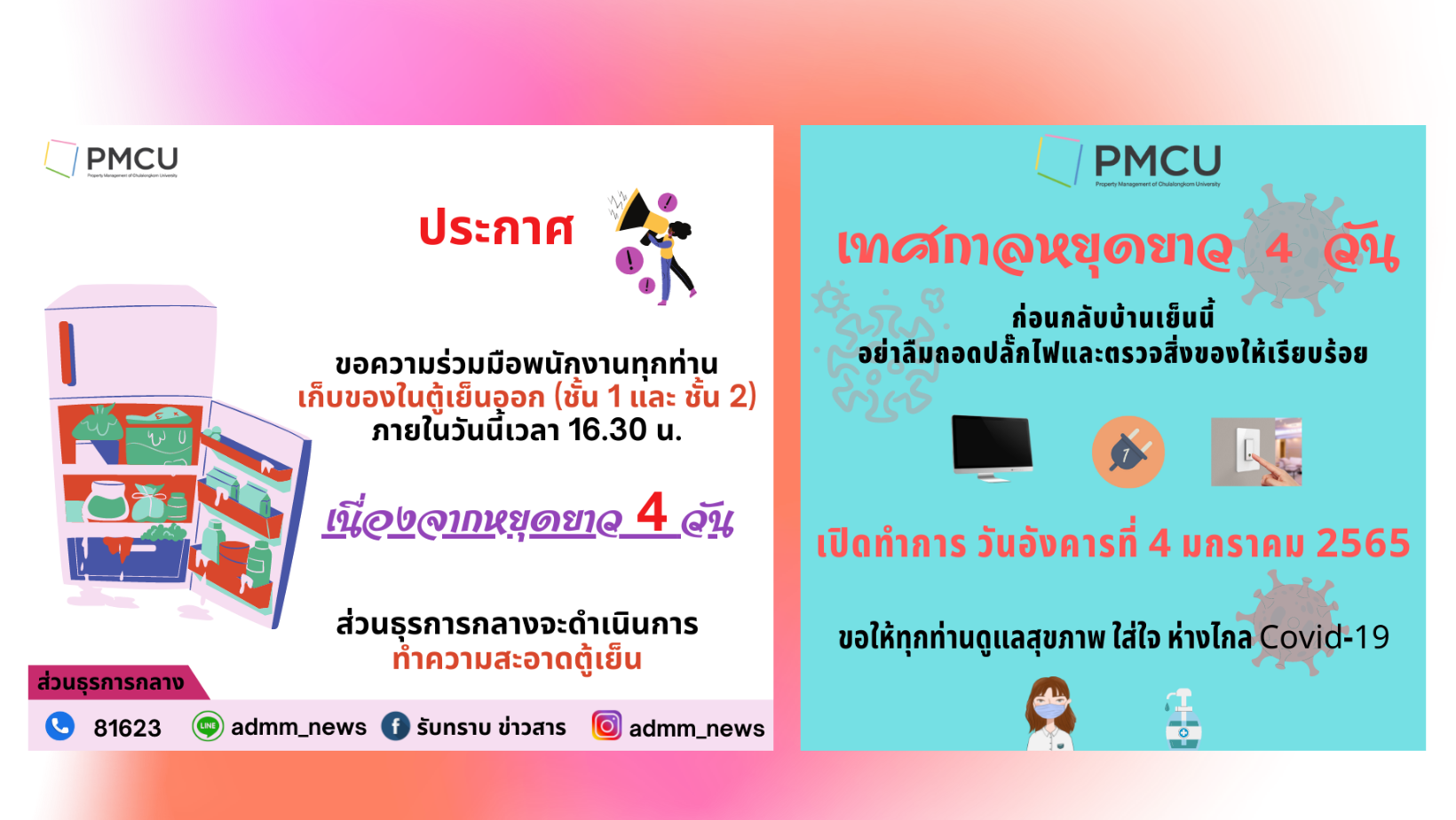 เปิดทำการ วันอังคารที่ 4 มกราคม 2565