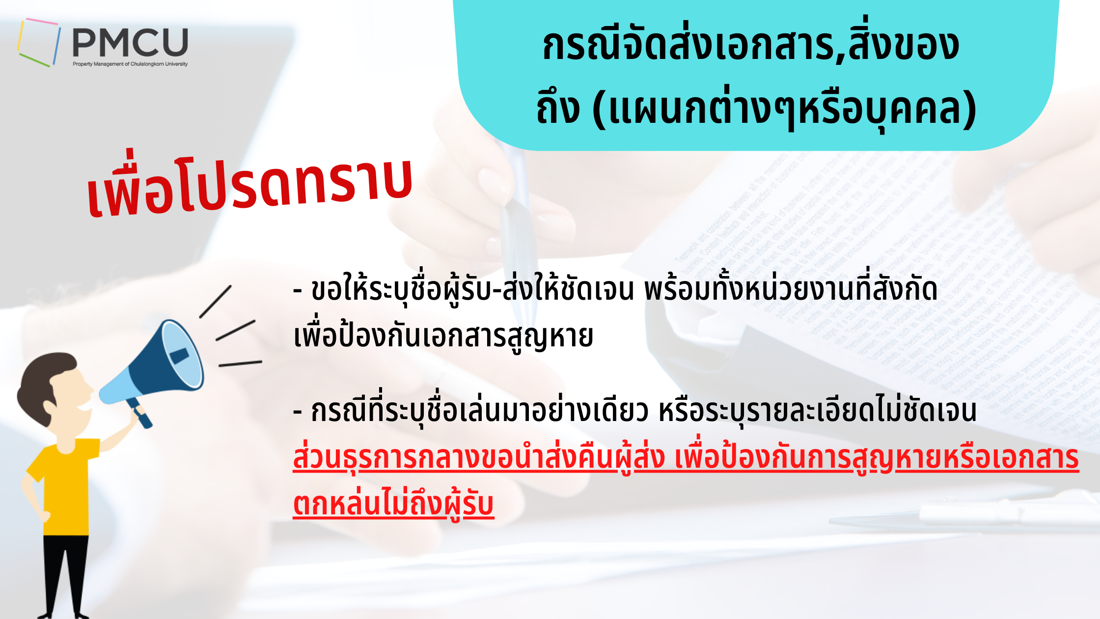 -ขอให้ระบุชื่อผู้รับ-ส่งให้ชัดเจน พร้อมทั้งหน่วยงานที่สังกัดเพื่อป้องกันเอกสารสูญหาย