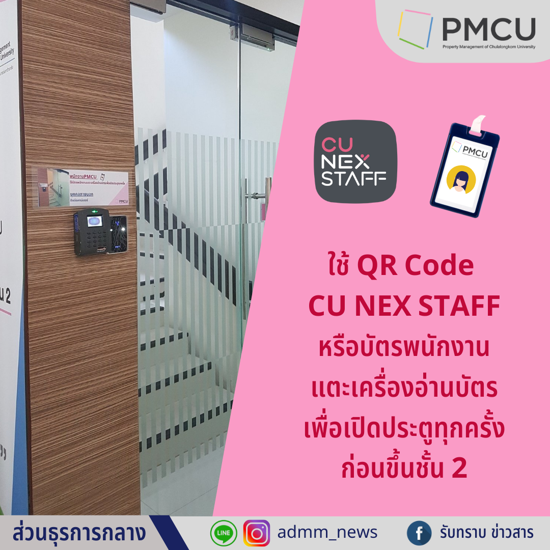 สามารถใช้ QR Code CU NEX STAFF หรือบัตรพนักงานแตะเครื่องอ่านบัตรเพื่อเปิดประตูทุกครั้งได้แล้ววันนี้