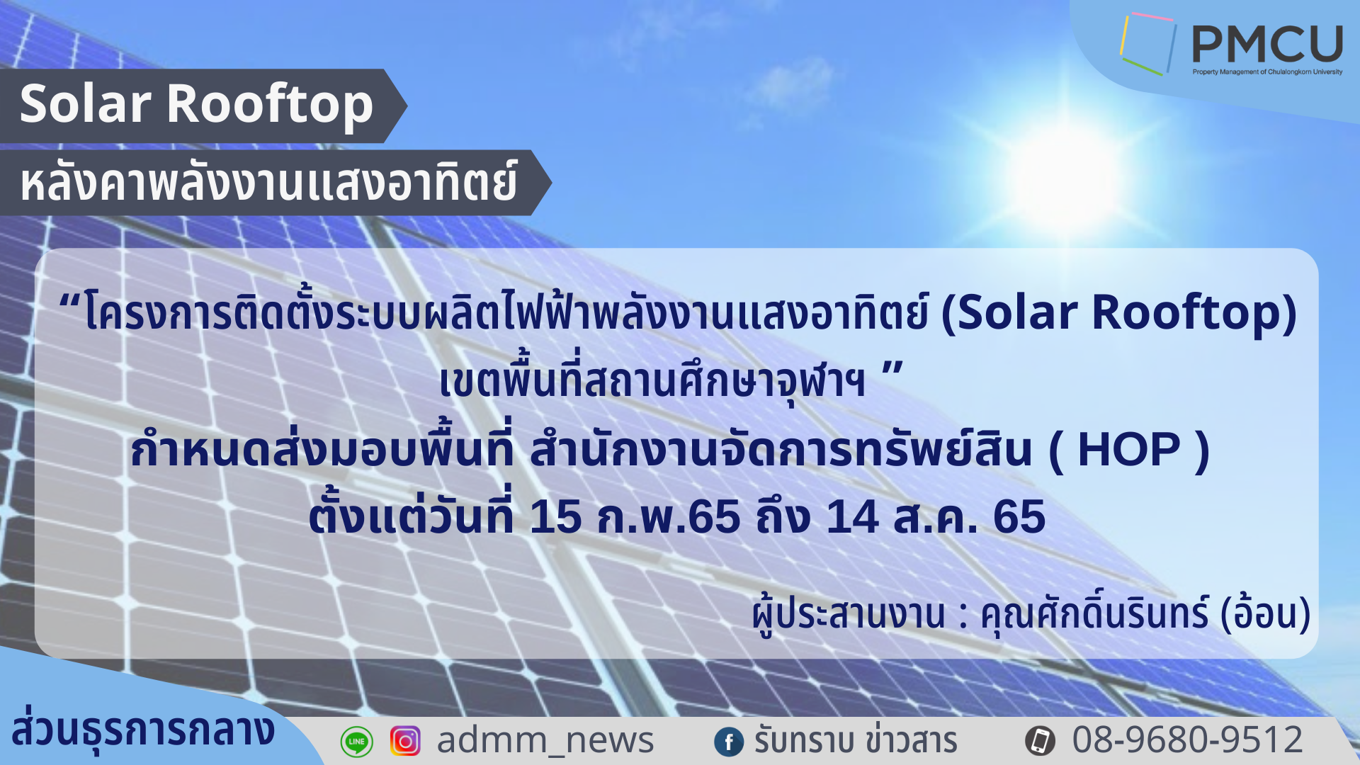 Solar Rooftop หลังคาพลังงานแสงอาทิตย์ อาคารสำนักงานจัดการทรัพย์สิน (HOP)