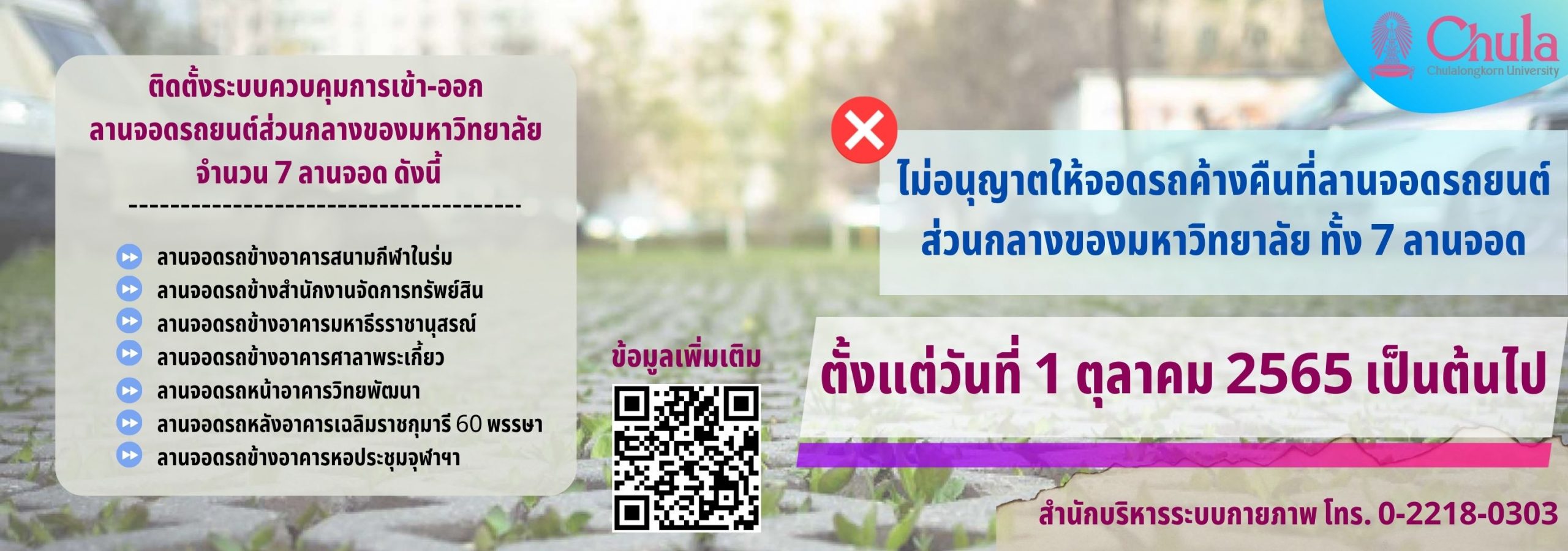 ไม่อนุญาตให้จอดรถค้างคืนที่ลานจอดรถยนต์ ส่วนกลางของมหาวิทยาลัย ทั้ง 7 ลานจอด